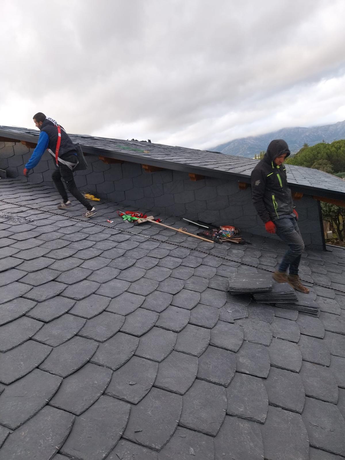 El proceso de colocación de la pizarra rústica es más complejo debido a su tamaño y mayor peso por teja y se realiza con puntas zincadas.